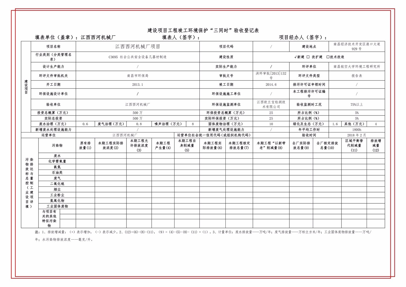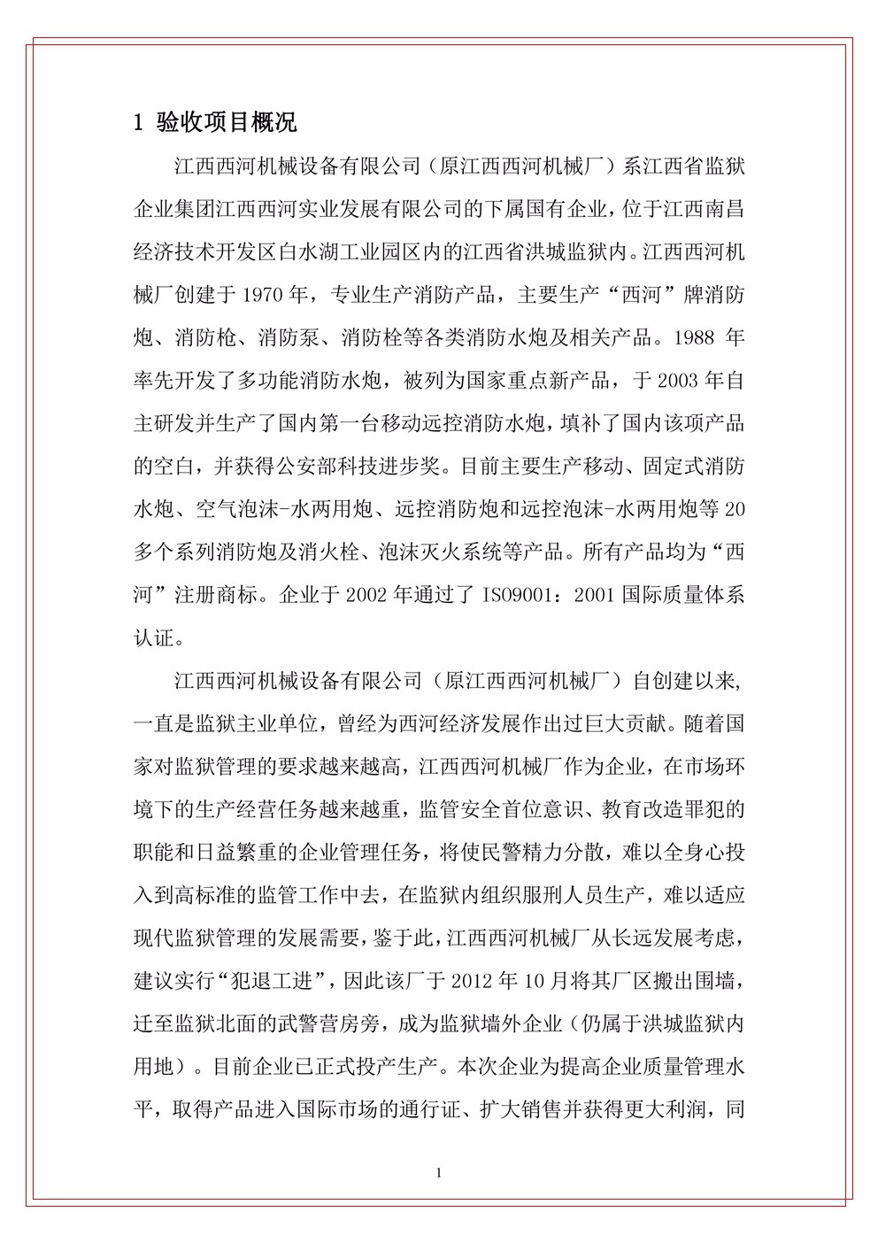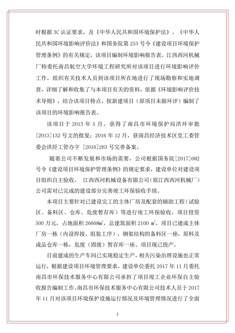 下一篇:江西西河機械設備有限公司(原江西西河廠)項目驗收竣工文本公示(附件)